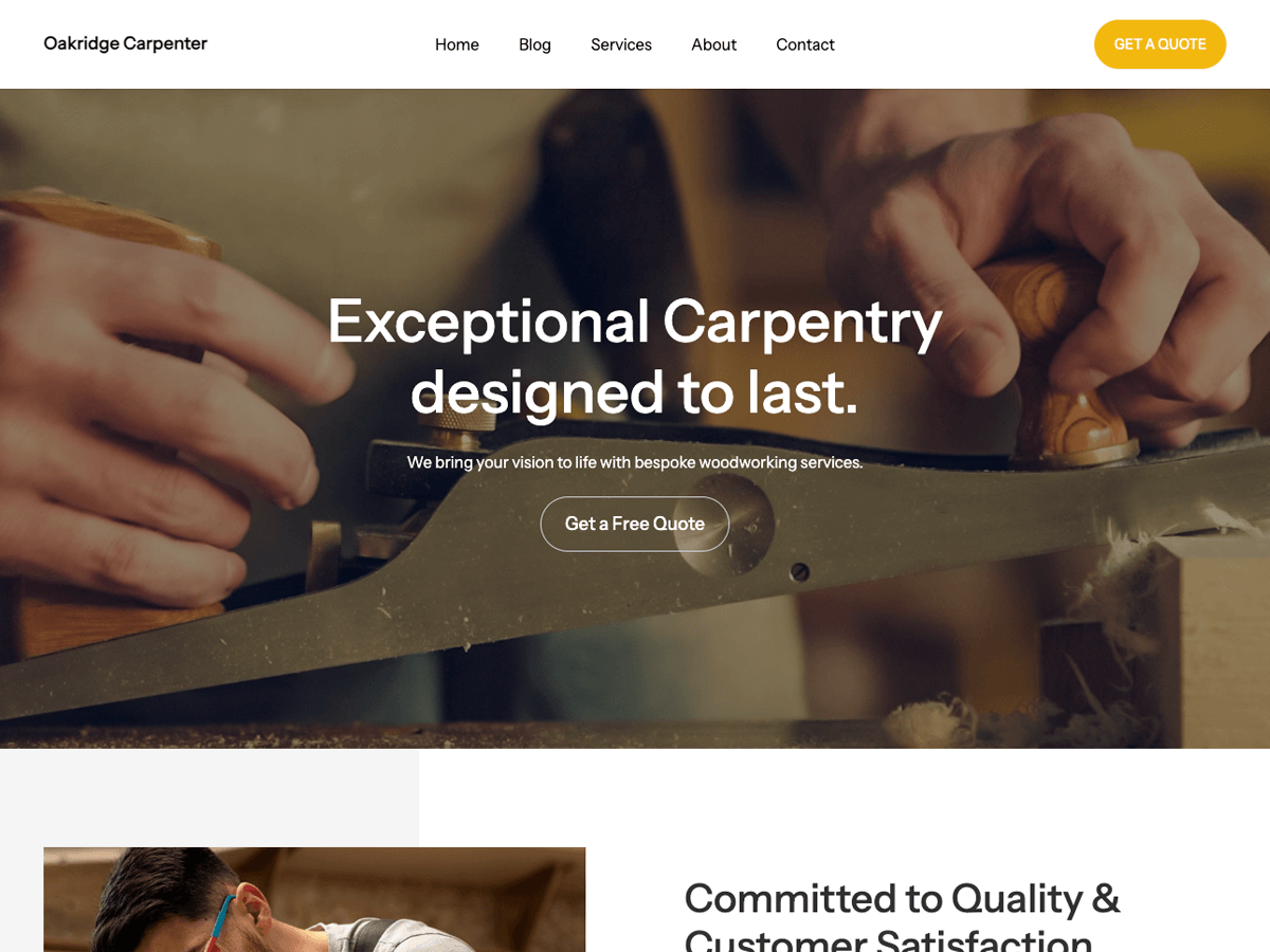 Oakridge Carpenter And Joinery is a responsive WordPress theme built for construction company, handyman, landscape, factory, maintenance and trade websites, yet it’s flexible enough to power any industry – from corporate businesses, manufacturer and repair and engieering startups to creative companies and independent bloggers. With full support for Gutenberg and Elementor, you can easily design pages using intuitive block tools and a fast, user friendly page builder, ensuring your website is built quickly and efficiently. This free FSE theme offers a minimalist, simple, and mobile friendly layout that adapts beautifully to one page landing pages, journals, magazines, or a stylish portfolio for writers and bloggers. Its smart integration of schema markup boosts SEO and search engines visibility, making it a perfect marketing asset. Oakridge Carpenter And Joinery’s pre-designed templates cater naturally to industries like construction, home building, carpentry, flooring, roofing, woodworking, DIY, and renovation. It’s also ideal for businesses specializing in furniture, cabinet making, timber joinery, and apprenticeship programs for artisans, plumbers, contractors, electricians and engineers. Whether you’re a supplier sustainability leader, architecture, chemical supplier or in manufacturing, production, or industrial sectors, or a blogger writing about sustainable construction, Oakridge Carpenter And Joinery delivers a fast, easy to use and modern theme that elevates your online presence — use it to showcase your company and even add a eCommerce store with seamless WooCommerce integration. Overall Oakridge Carpenter And Joinery can be used for any sort of project, but it has the most pre-built designs for trade and craftsmanship websites.