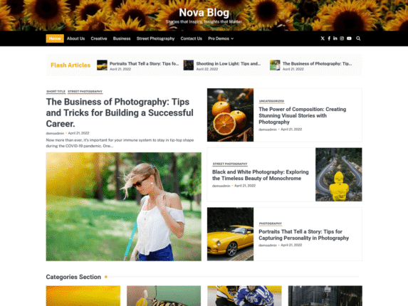 Nova Blog is a stylish and modern WordPress theme designed for both personal and professional bloggers. Fully responsive, SEO-optimized, and translation-ready, it helps you reach a wider global audience. With reliable updates and dedicated support, you can focus on sharing your content while we take care of everything else. Kickstart your blogging journey with Nova […]