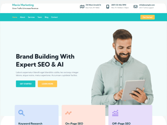 Mavix Marketing is a dynamic WordPress theme crafted for creative digital agencies, design studios, and marketing professionals. With a bold aesthetic, flexible customization, and agency-focused layouts, it empowers you to showcase your portfolio, highlight services, and attract new clients.